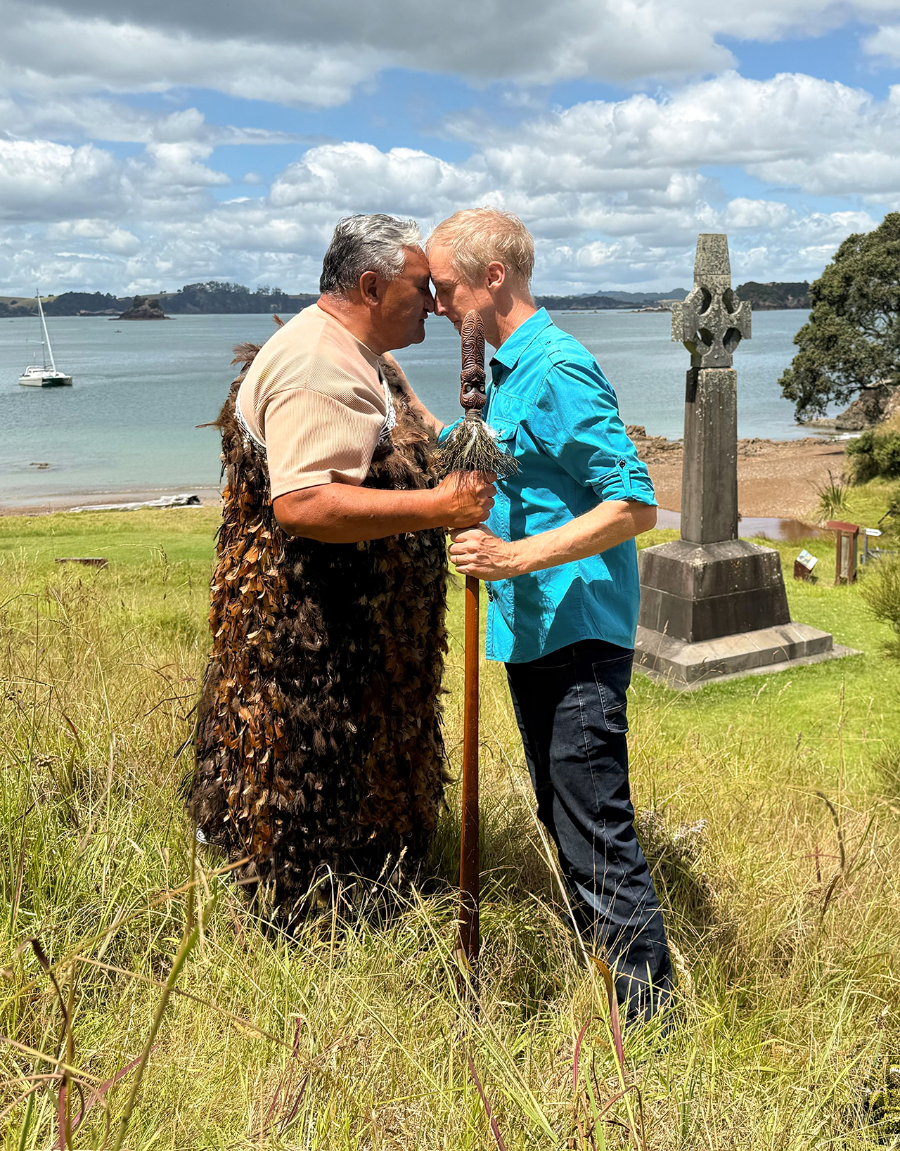 The image found with this article illustrates the difference. When asked about a suitable image for this article, two Ngāti Torehina kaumatua suggested this photo be taken. It includes myself with Te Hurihanga — representing Ngāti Torehina. It is taken at Rangihoua Bay, where Ruatara first invited Marsden to share the Christian message of love and peace. It represents an extension of grace from Ngāti Torehina toward us for our wrong-doing, while putting right the process that should have been taken. It is symbolic of this story — as also of the message their ancestor Ruatara enabled to be told in these lands.